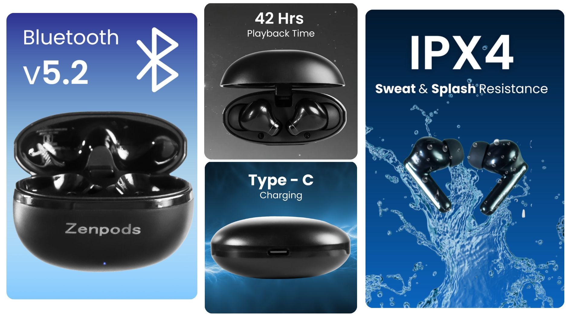 - 1x Pair of Zenpods Fusion Midnight Black